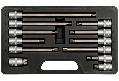 Sada kvalitních zástrčných prodloužených klíčů XZN s bitem pevně spojeným s hlavicí se čtyřhranem 1/2".