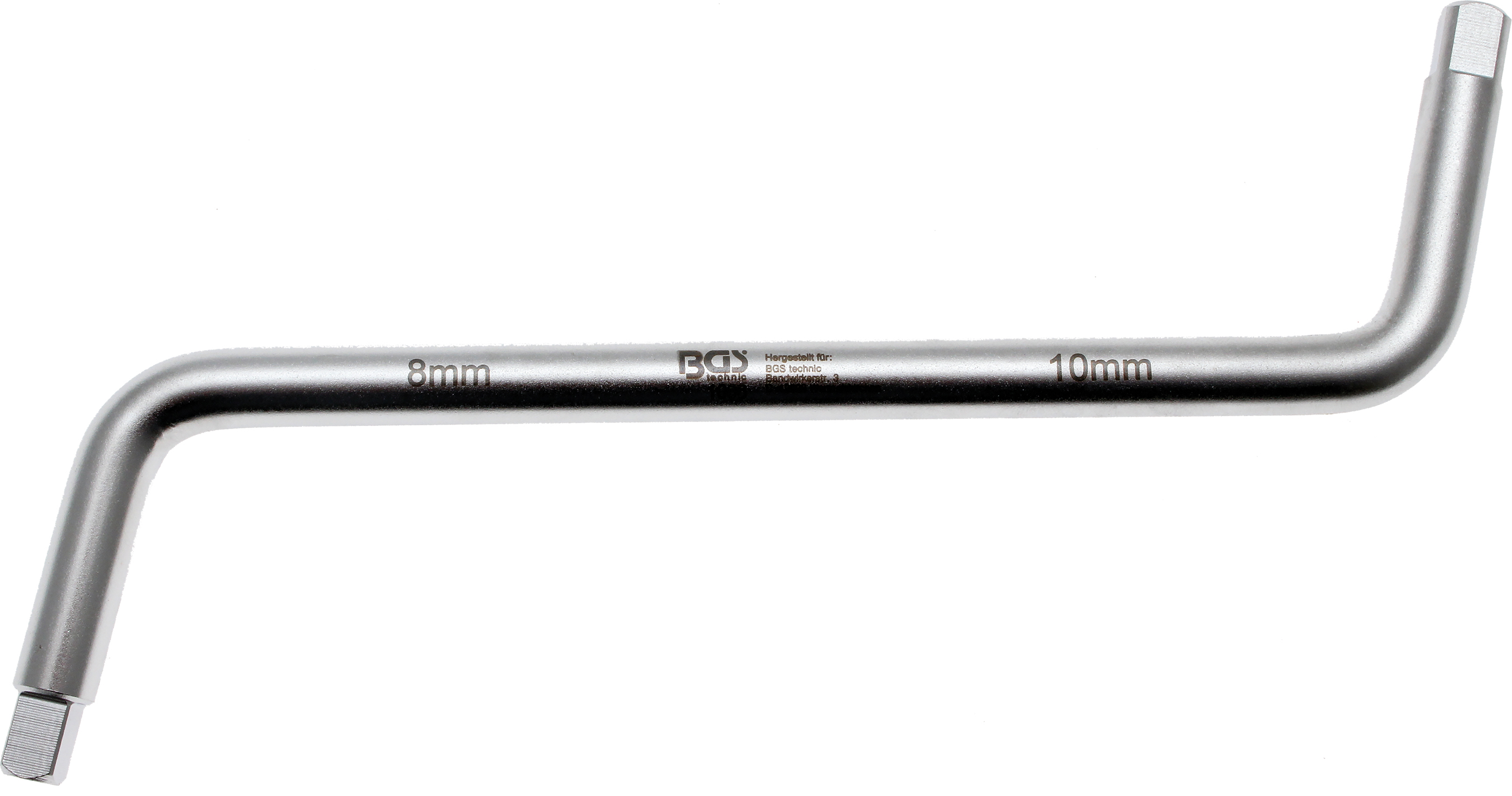 Speciální klíč na výpustné šrouby olejových van u vozidel Peugeot, zástrčný čtyřhran 8 a 10 mm, oboustranný.