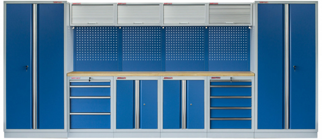 Sestava nábytku v sobě skrývá dostatečné množství úložného prostoru pro vaše nářadí, autotechniku i dílenské vybavení. V kombinaci s bytelnou pracovní deskou získáte multifunkční stěnu, se kterou vám půjde práce od ruky ve všech směrech.