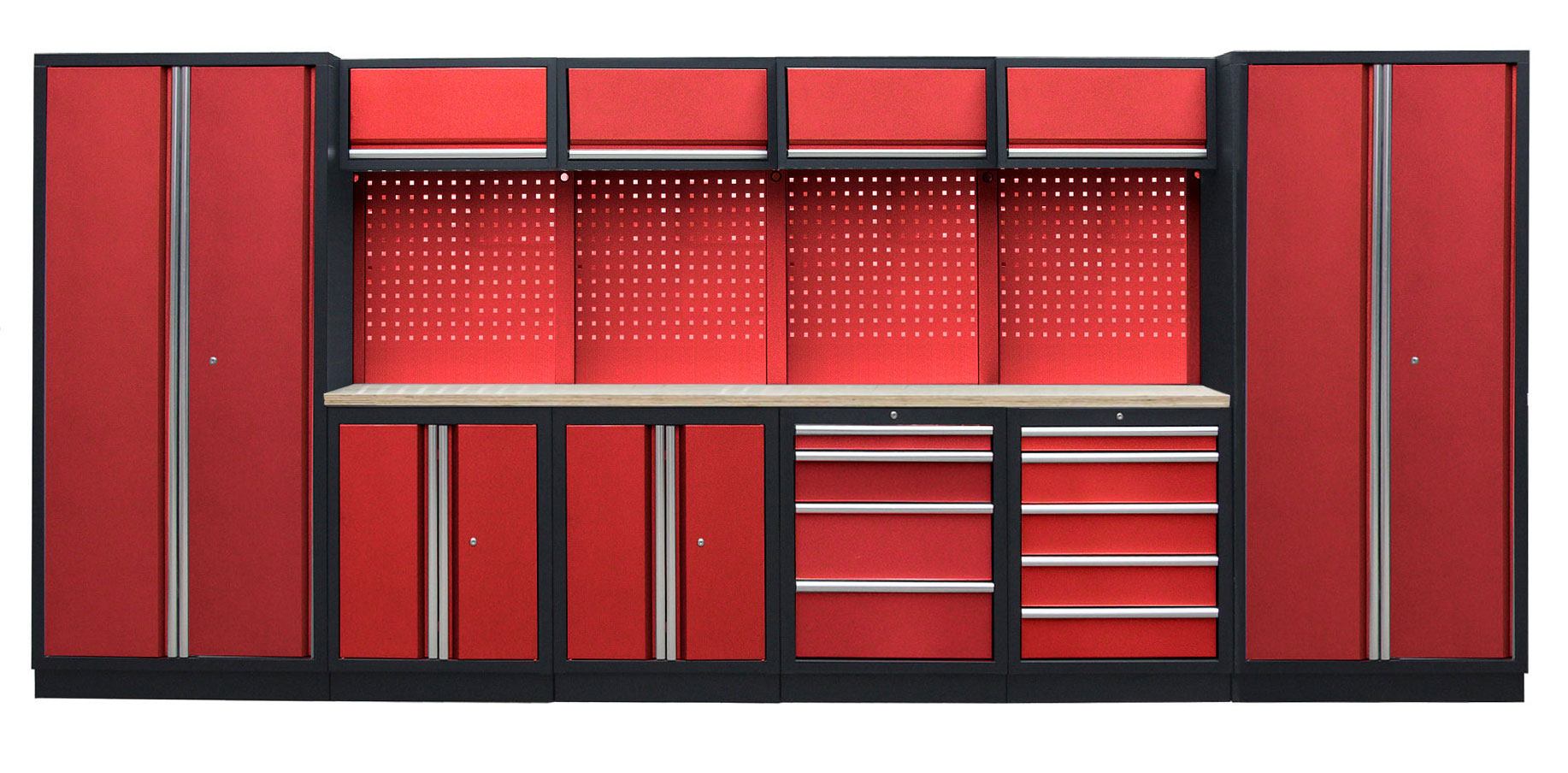 Spodní a vysoké skříňky jsou uzamykatelné. Ať už plánujete sestavu do domácnosti nebo do práce, vaše nářadí bude v bezpečí před nezvanými hosty.