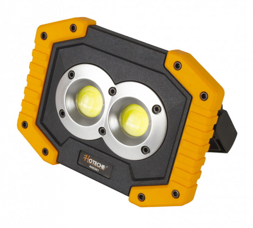 Odolná pracovní LED svítilna s funkcí powerbanky od značky Hoteche s výkonem 10 W, která najde spoustu využití v různých dílnách, garážích nebo například i při kempování apod.