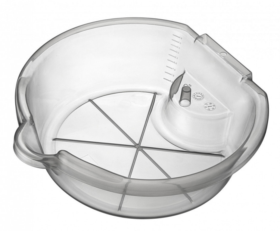Plastová olejová jímka s kapacitou do 4,5 l na vnitřní stěně umožňuje okamžitou kontrolu objemu vypuštěné kapaliny. Transparentní provedení z PP, teplotní odolnost –15 až 105°C, stupnice dělená po 0,5 l a rozměry kruhové nádoby 350 × 320 × 110 mm.