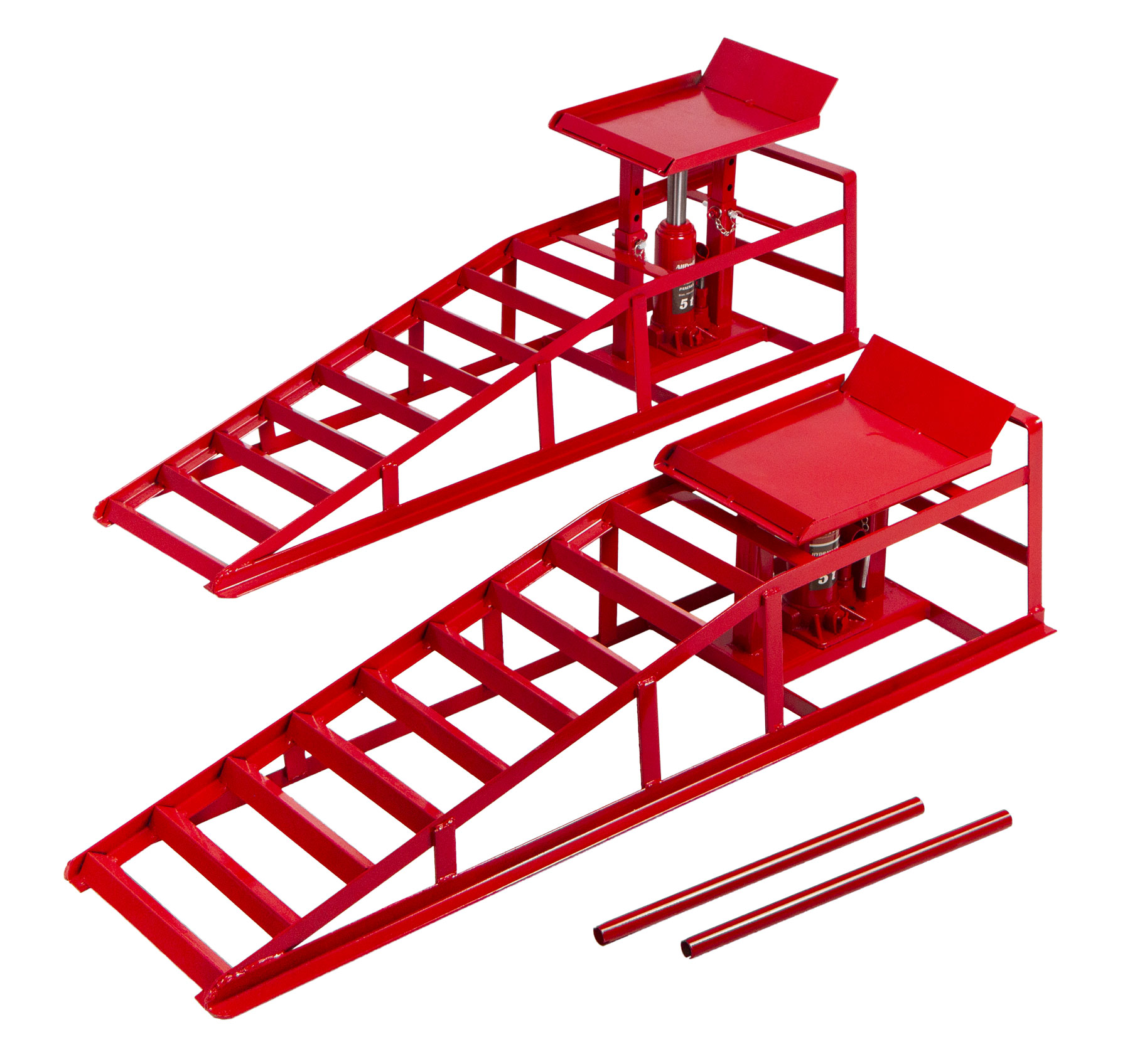 Kovové nájezdové rampy jsou určeny pro osobní a menší dodávkové vozy a slouží ke snadnému servisu či opravám podvozkových částí vozidel. Díky integrované hydraulice umožňují bezpečné zvednutí vozidla bez nutnosti použití samostatného heveru.