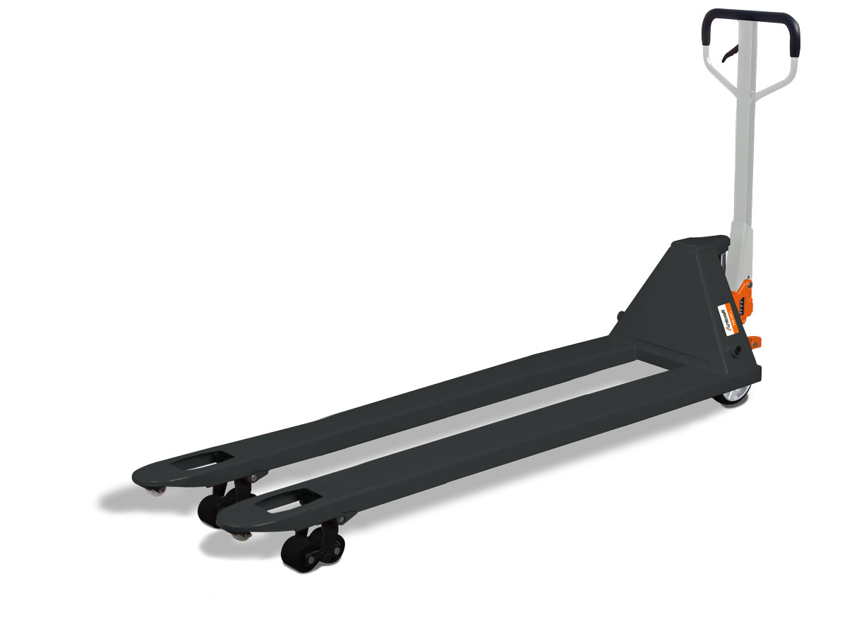 Profesionální paletový vozík se zvedací silou 2,5 t a prodlouženou vidlicí (1 800 mm). Stabilní a robustní kvalita pro každodenní nasazení.