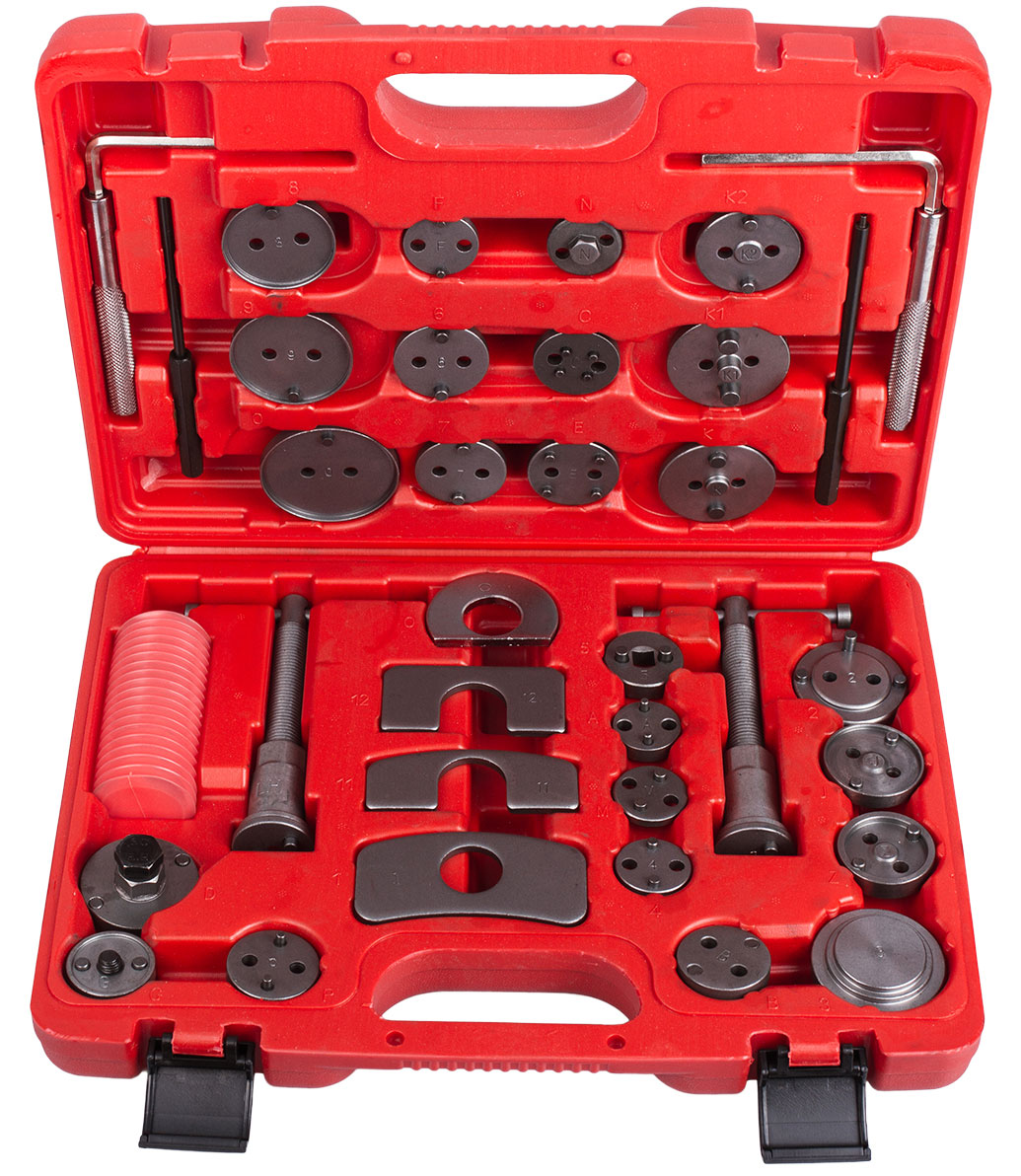 - Kompletní sada pro zatlačení pístků brzd při výměně brzdového obložení. Levý a pravý závit a celkový počet 35 dílů v sadě zaručí, že je sada použitelná prakticky na každý vůz.