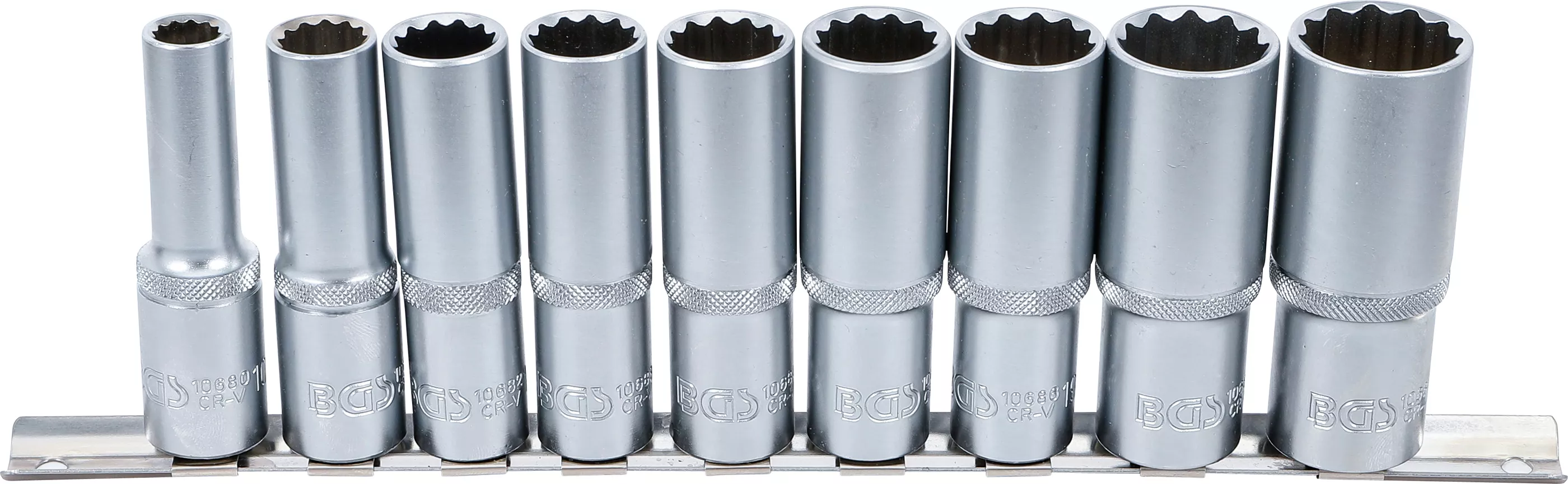 Sada nástrčných dvanáctihranných hlavic, prodloužené provedení, 1/2" - BGS