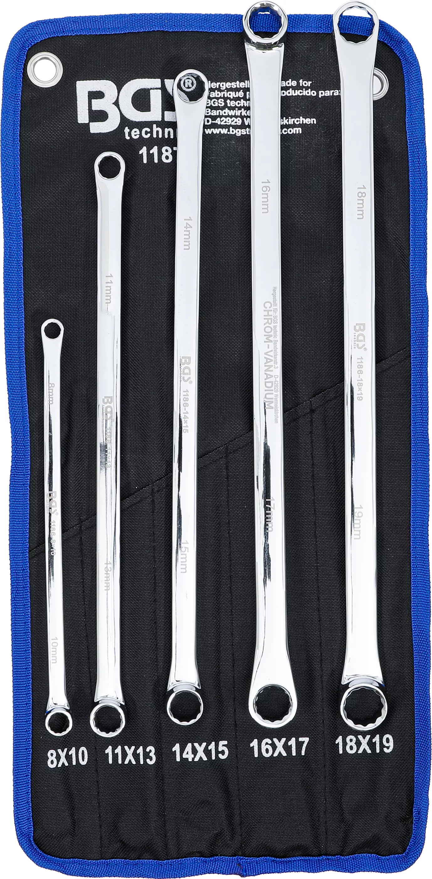 Sada oboustranných očkových klíčů, velmi dlouhé, 8 - 19 mm, 5 ks - BGS