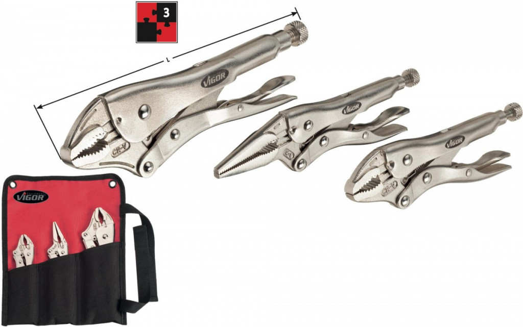 Sada svíracích kleští, 3 ks, ve svinovací tašce VIGOR V1808