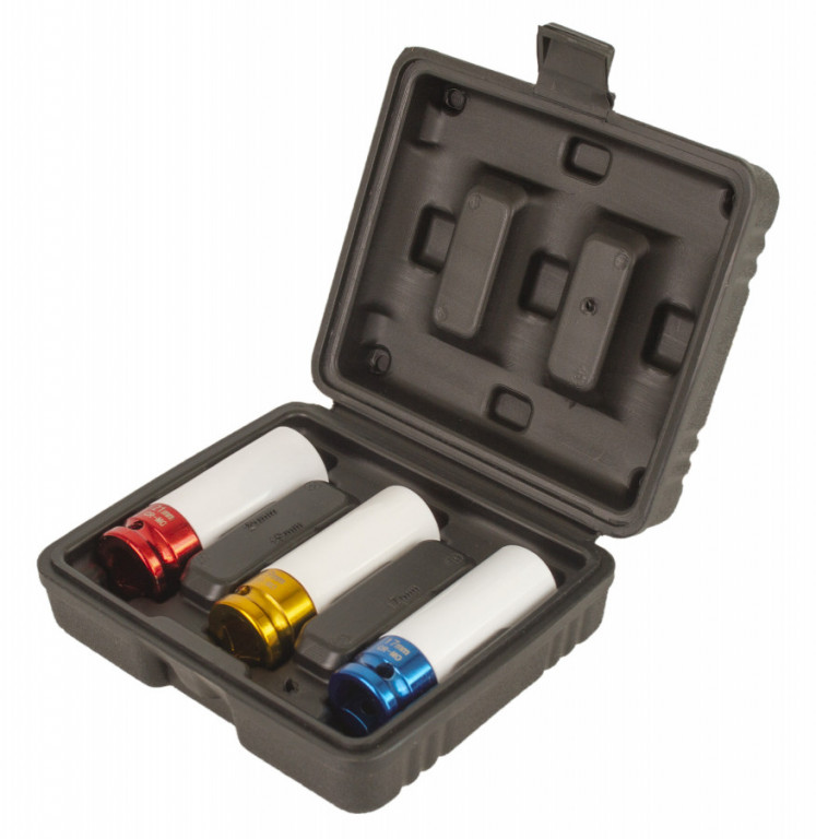 Sada obsahuje 3 ks klíčů o velikostech 17 mm (modrá), 19 mm (zlatá), 21 mm (červená) a délce 80 mm.