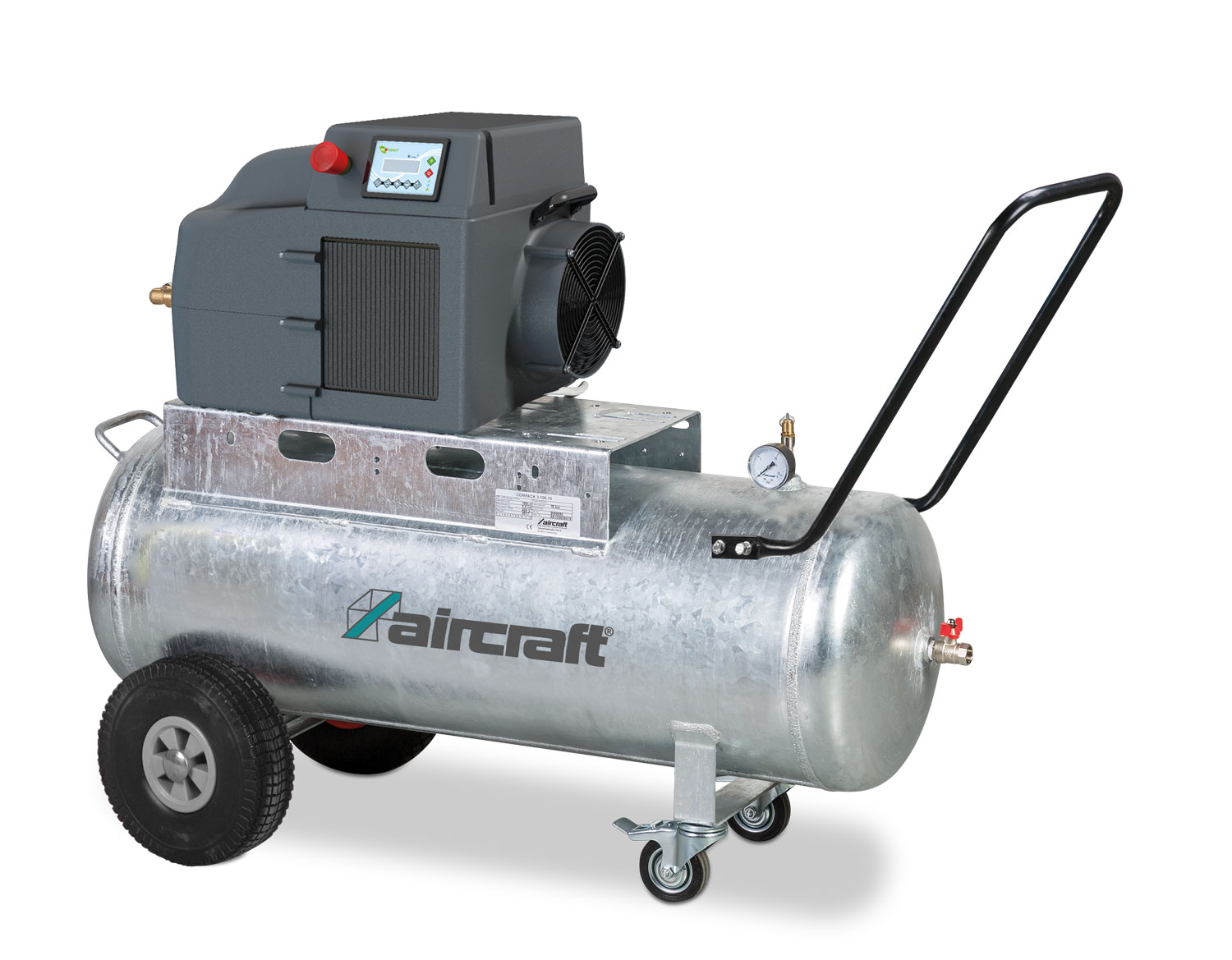 Pojízdný kompresor k trvalému odběru stlačeného vzduchu s tlakovou nádobou a ovládáním pomocí řídící jednotky K-Tronic. Vhodný pro časté změny zatížení díky regulaci teploty oleje.